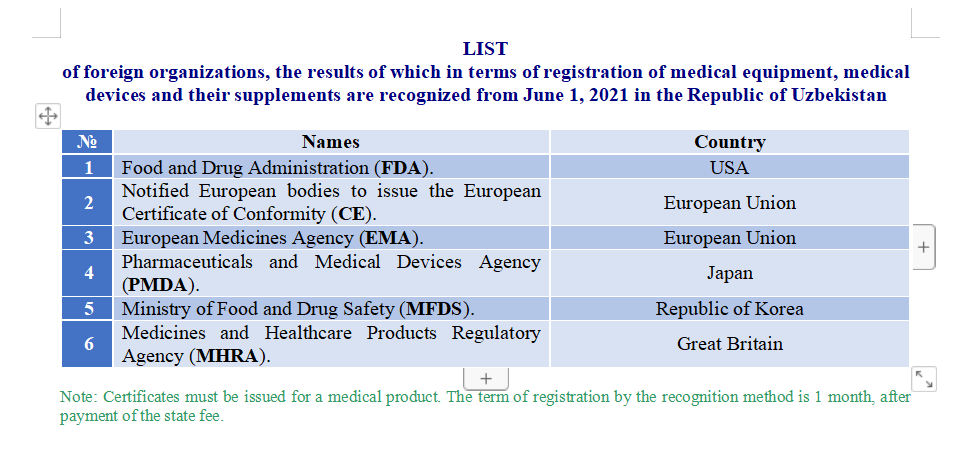 乌兹别克斯坦医疗器械和医疗设备注册
